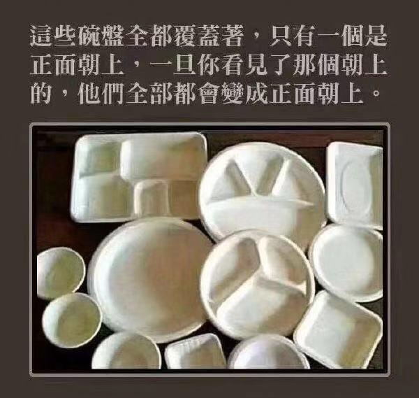 3. 为什么一个朝上的碗就能把所有的碗盘都翻过来,而且一旦看到朝上的碗,就再也看不到(或很难再看到)朝下的碗盘了?